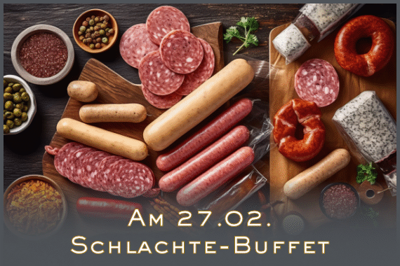 Lassen Sie sich von einer Auswahl an frischen Wurstspezialitäten verführen, inklusive Stecke und hohen Rippen. Unser Schlachte-Essen präsentiert diese Delikatessen, begleitet von traditionellem Sauerkraut.
